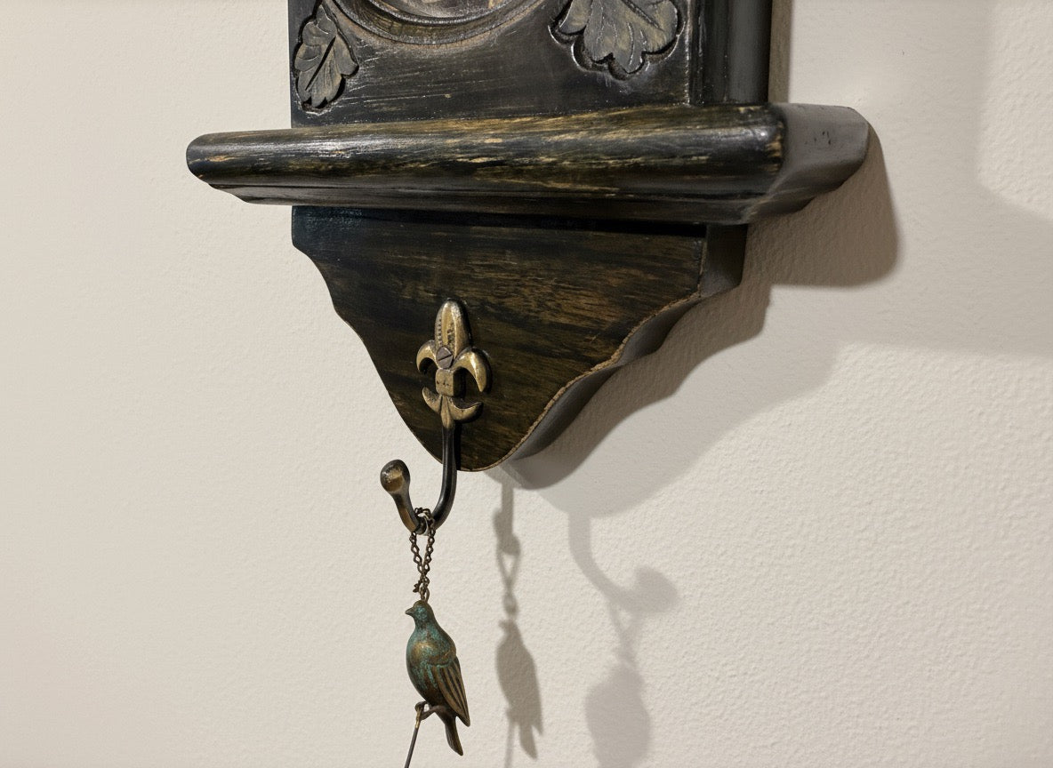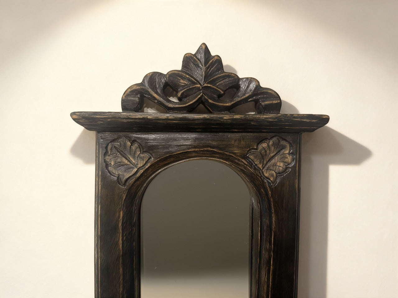 Elevate your space with this handcrafted mirror, where timeless elegance meets functional charm. Its traditionally carved frame and warm antique finish bring a heritage-rich character to any wall.