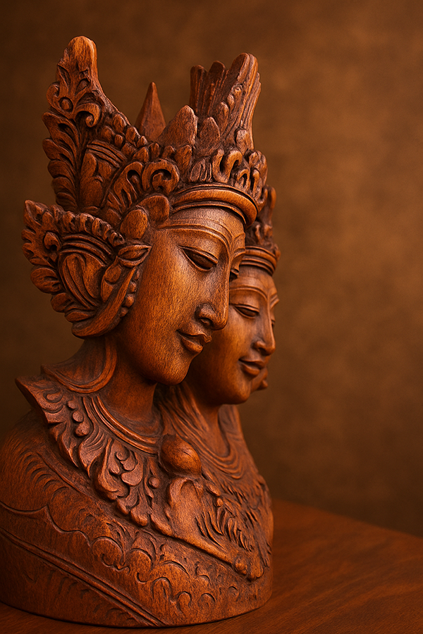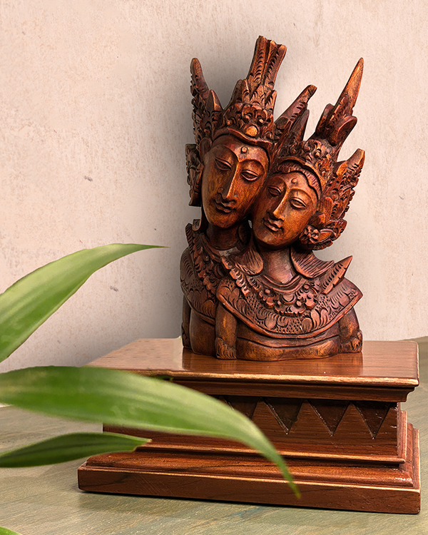 Ekatva showcases the intricacy of traditional craftsmanship. Carved with remarkable precision and in Mahogany polish, the sculpture exudes elegance, harmony, and timeless cultural richness.